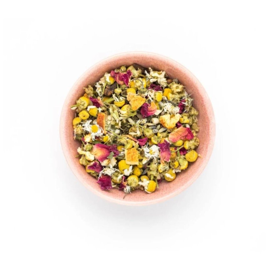 Složení: Heřmánek květ, Máta kadeřavá list, Pomeranč oplodí, Růže okvětí, Hřebíček celý, Levandule květ, Sedmikráska květ